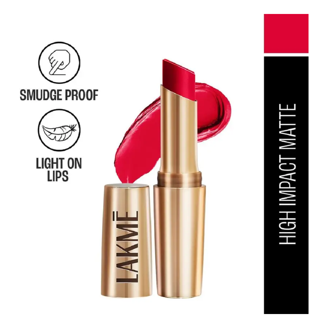 An unstoppable matte, for an unstoppable you! Introducing Lakme 9TO5 Primer+Matte Lipstick, with 2x built-in primer that gives your lips a long-lasting, smooth matte finish. Why should you choose Lakme 9 to 5 primer matte lipstick? This Lakme lipstick glides onto your lips smoothly and feels extremely comfortable and lightweight. The built-in primer ensures that the color s